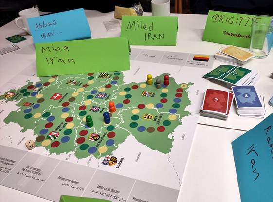 Einige würfelten sich beim Deutschland-Spiel schrittweise durch Landschaften, Geschichte, Politik und Alltagsleben. Andere beschäftigten sich mit Hilfe von Fragenkarten mit den Feinheiten der deutschen Sprache.